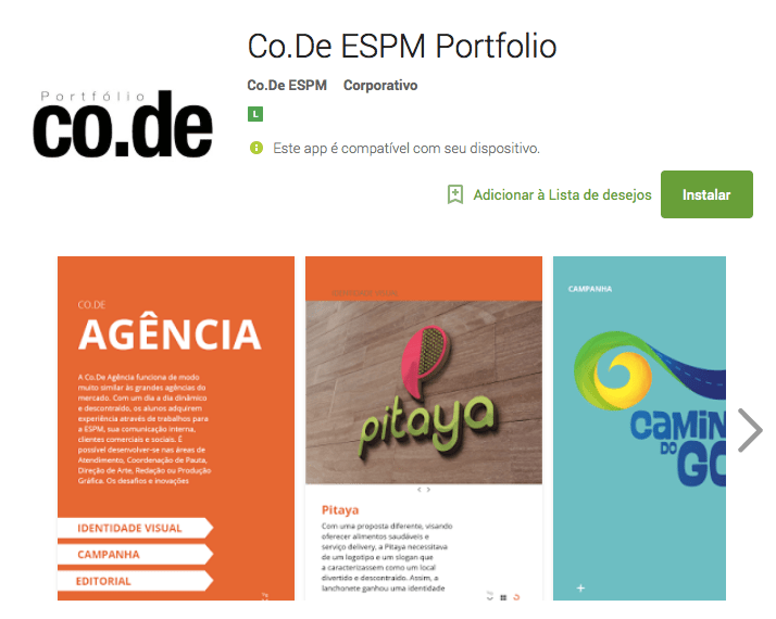 Em 2015, a Co.De – Empresa de Comunicação e Design Jr. da ESPM-SUl editou o aplicativo Portfolio Co.De ESPM para os smartphones com sistema Android. Produzido totalmente por alunos, membros da Co.De, o projeto contou com a coordenação de Rodrigo Valente e a orientação de professores especializados, e está disponível na lojas Google Play. Continuar lendo “Aplicativo: Portfolio da Co.De”
